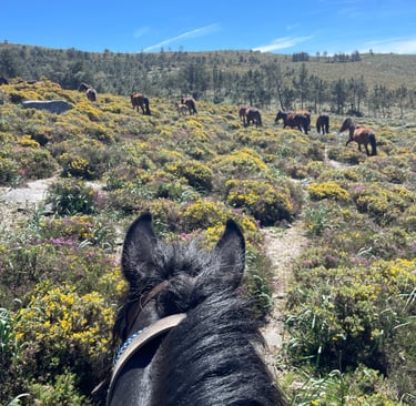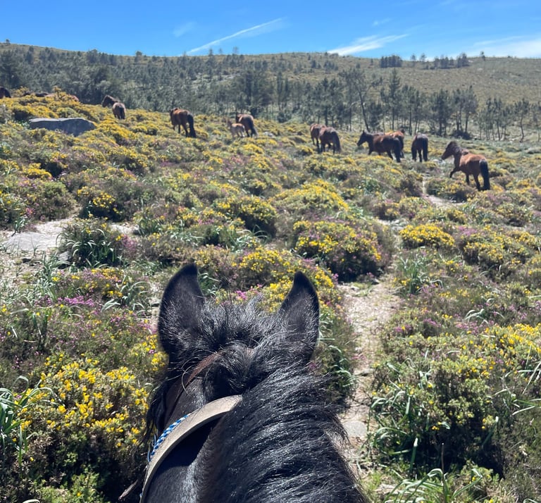 El viaje comienza en Finca Moreiras, donde después de un pequeño brifing explicativo para conocer mejor nuestros caballos, los participantes parten a primera hora de la mañana hacia lo alto de la sierra.