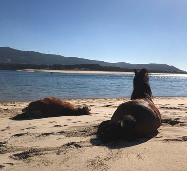 Un viaje único para sumergirse de pleno en la cultura galaico-portuguesa a lomos de caballos pura raza gallega, recorremos la antigua ruta del estraperlo, donde antiguamente se realizaba el contrabando de productos como café. Aceite, azúcar o tabaco. Después de varias jornadas descubriendo A Serra da Groba, Atravesamos el Rio Miño para cruzar la frontera a Portugal, cabalgaremos por la ribera del río Miño, hogar de pescadores y avanzaremos hacia el litoral disfrutando del paisaje luso para poder llegar a las playas salvajes de Portugal.