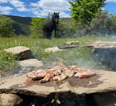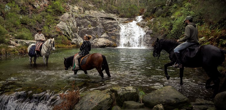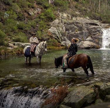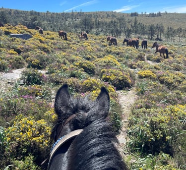 Se trata de una Travesía circular de montaña de varias jornadas por el corazón de la sierra da Groba, donde recorreremos a caballo gran parte de la sierra, descubriendo los lugares más emblemáticos, en busca de manadas de caballos salvajes, conociendo su hábitat, historia, comportamiento y su manejo tradicional . Vivir la experiencia de pasar una noche de vivac rodeados de caballos, visitar pequeñas aldeas de montaña, bañarse en pozas naturales o galopar por la costa del litoral atlántico junto al mar todo esto disfrutando de la estancia y gastronomía tradicional gallega.